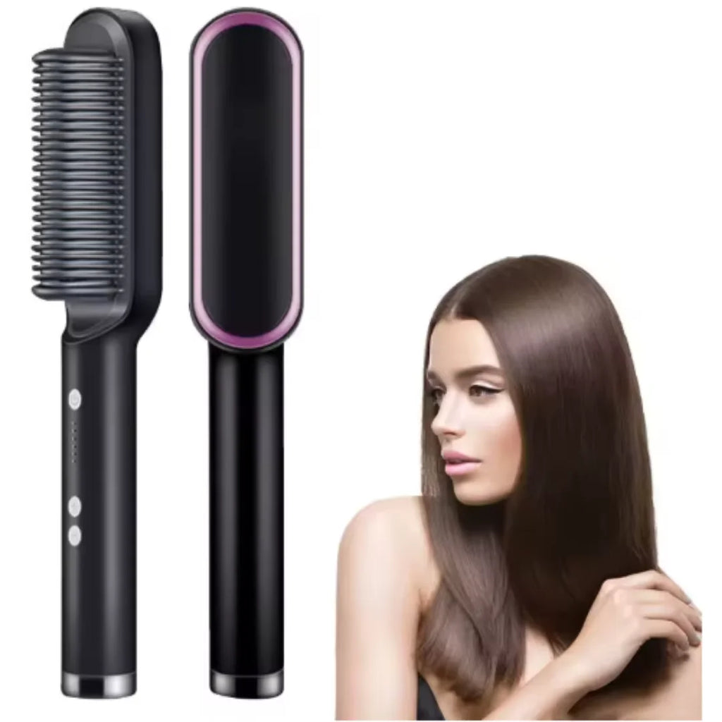 Get smooth, shiny and full of life yarns with the2 in 1 Electric Straighten Brush, The perfect ally for a flawless look in minutes.